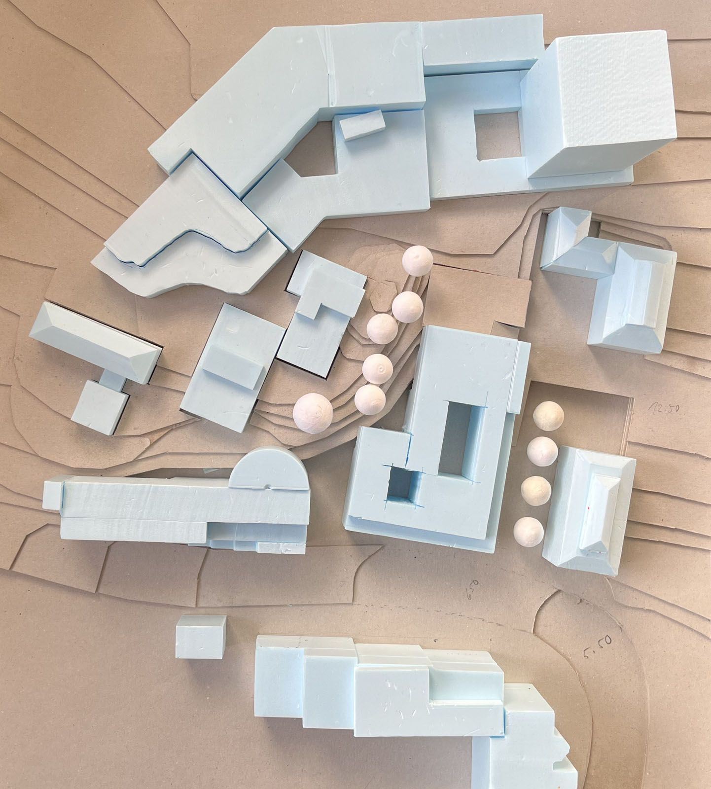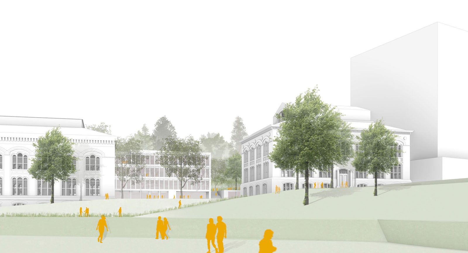 Baukörper für die Akademie und die Verwaltung aufgenommen. Die Adressen und das Parken liegen an der Brunswiker Straße und beleben mit den öffentlichen Erdgeschossnutzungen den Straßenraum.