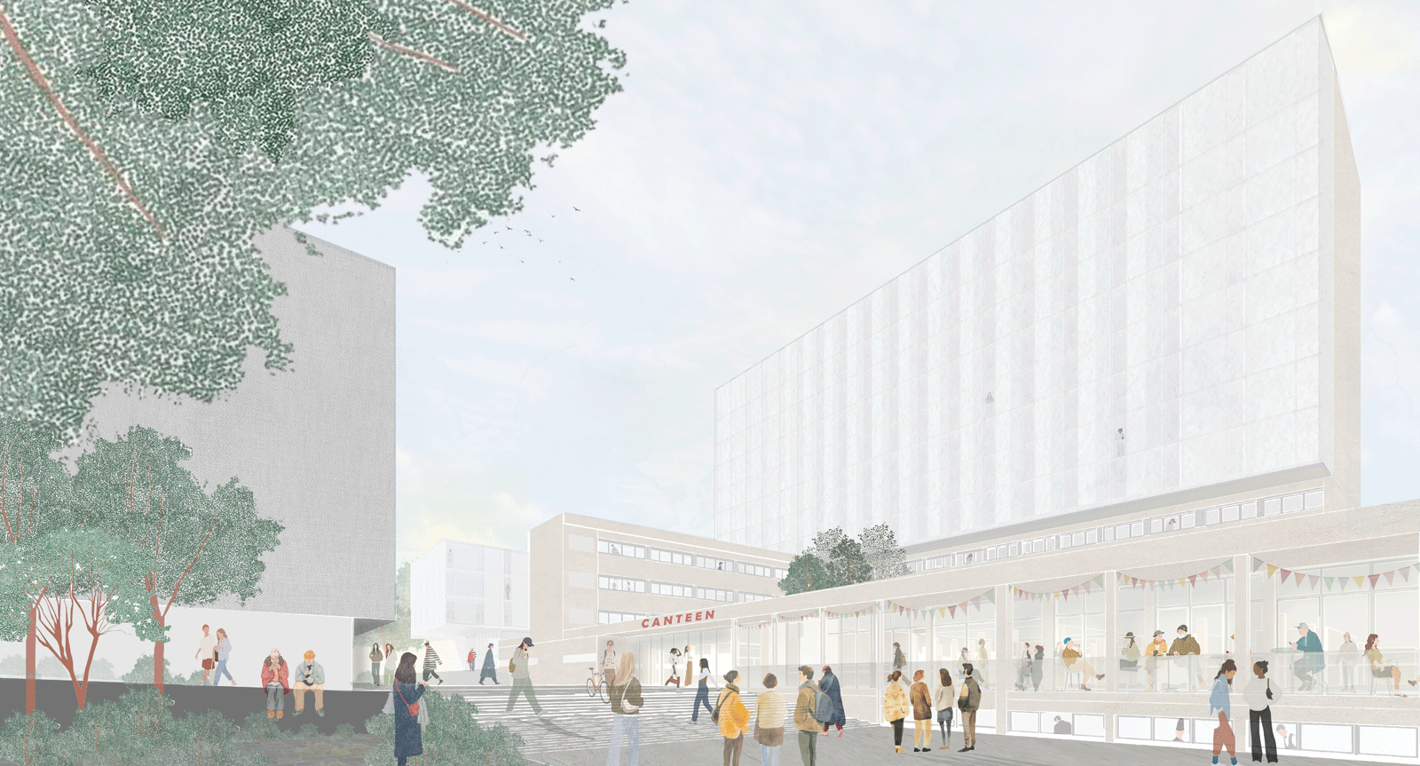 Das im Auftrag der Academy of Architectural Culture gemeinsam mit internationalen Studierenden entwickelte Umbaukonzept der ehemaligen Frauenklinik zu Wohn-, Forschungs-, Labor- und Lernräumen, einer Verwaltung und einer Kantine aktiviert den umliegenden Stadtraum mit einem nachhaltigen Urban-Mining-Ansatz.